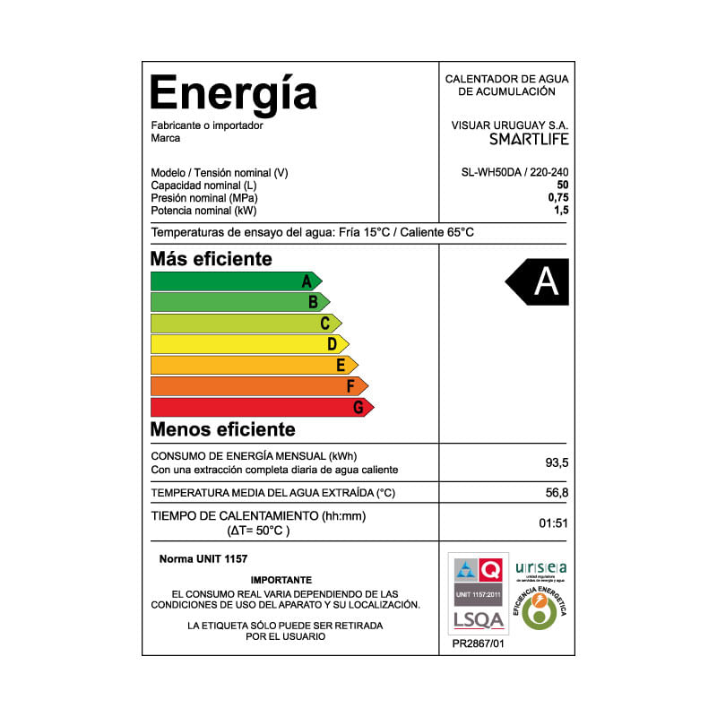 ClimatizaciónCalentadores De AguaTERMOTANQUE 50L EFICIENCIA ENERGÉTICA A